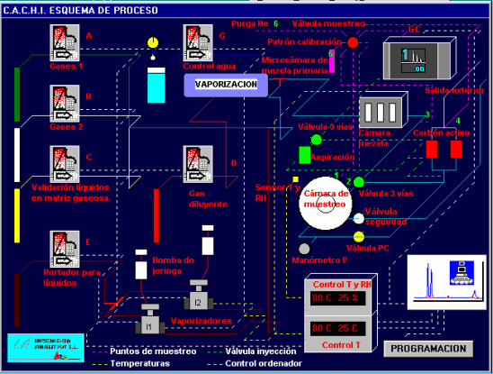 La Cámara de Atmósfera Controlada para Medio Ambiente e Higiene Industrial, CACHI, es un sistema múltiple que combina la posibilidad de creación de una atmósfera controlada de composición química, humedad y temperatura conocidas, con sistemas analíticos que permiten precisamente conocer la composición de la atmósfera generada y medir su temperatura y humedad.Totalmente automática y controlada por un potente software.