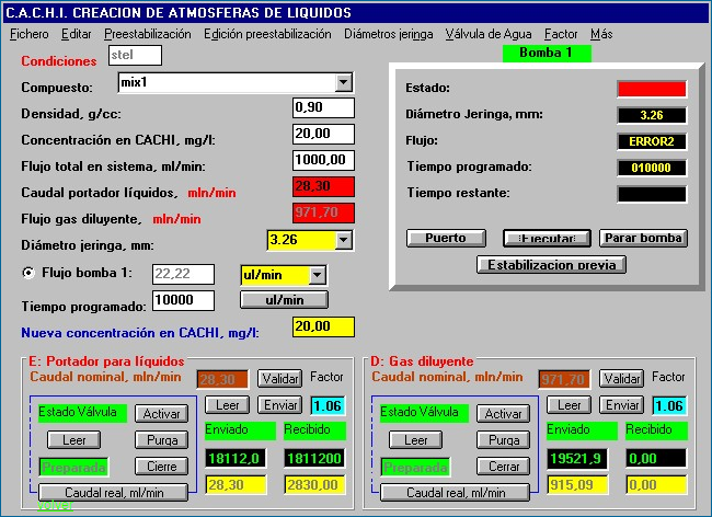 Ejemplo del Software de la CACHI 2001, para la programación de atmósferas de líquidos
